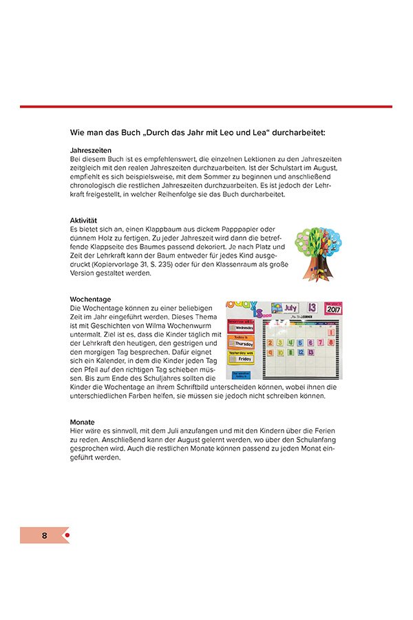 Das Lehrerhandbuch „Durch das Jahr mit Leo und Lea“ bietet kreative Konzepte, Aktivitäten, Kopiervorlagen und Karten um den Unterricht abwechslungsreich und effektiv zu machen.